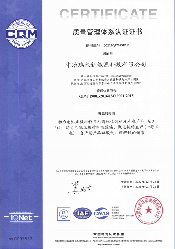 公司依据ISO 9001:2015、IATF16949:2016标准的要求,建立、实施和保持质量管理体系,公司全体员工将有效地贯彻执行并持续改进其有效性。